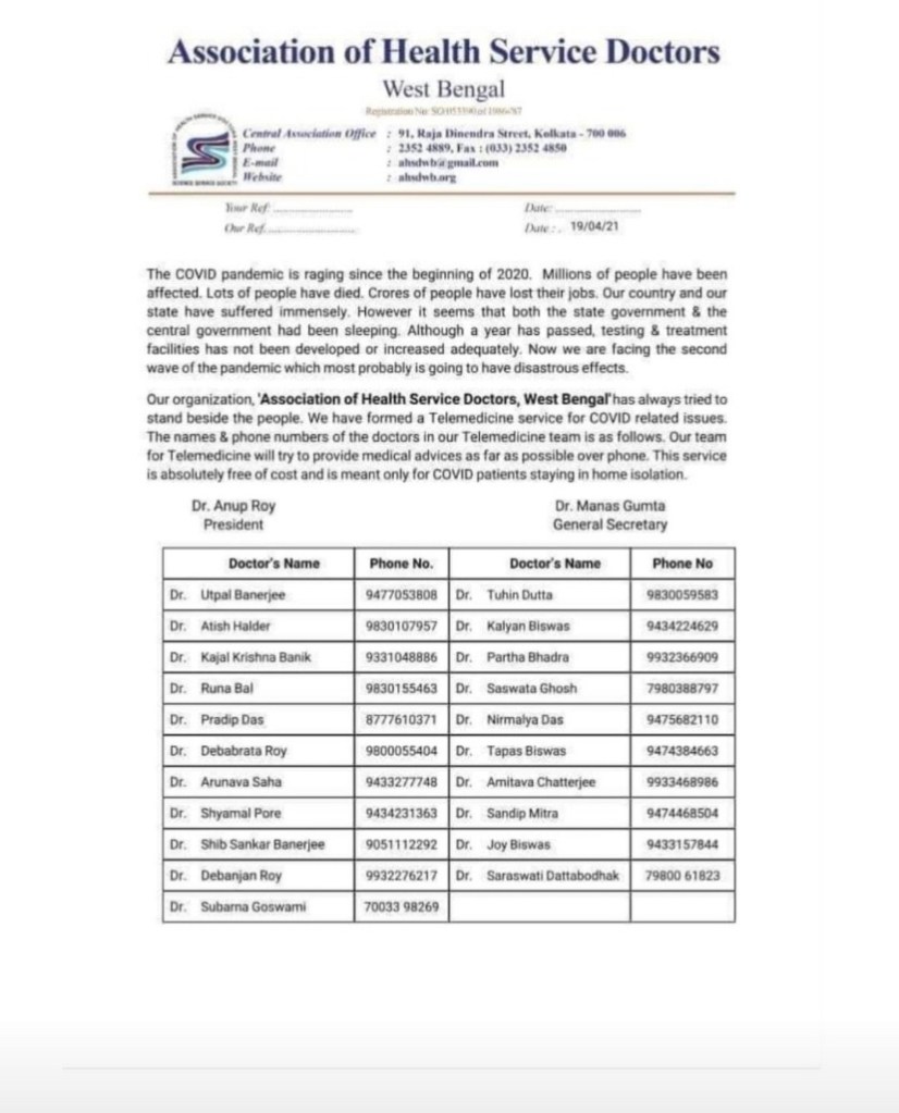 TELEPHONIC GUIDANCE ON COVID IN BANGALORE: https://twitter.com/anaantf/status/1383876931347570689?s=21